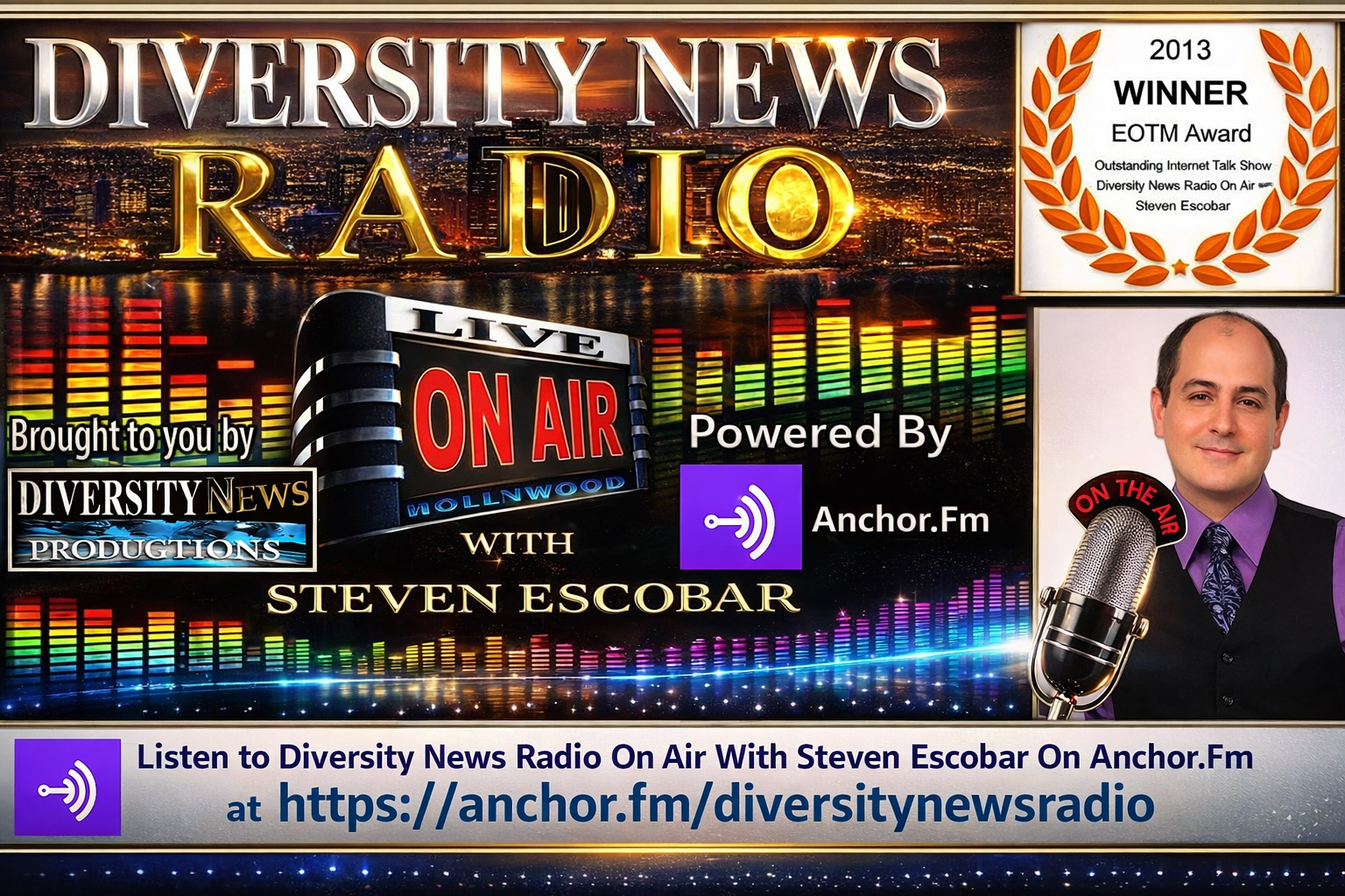 Esteban Steven Escobar is the Founder and Executive Producer of the Diversity News Magazine Awards, CEO and President of Diversity News Media Brands, CEO and Executive Publisher of Diversity News Magazine, CEO and Executive Producer of Diversity News Productions, and Founder and Director of Diversity Pageants USA.
